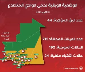 ارتفعت بؤر حمى الوادي المتصدع في موريتانيا إلى 44 بؤرة موزعة على22 مقاطعة تتبع لعشر ولايات.